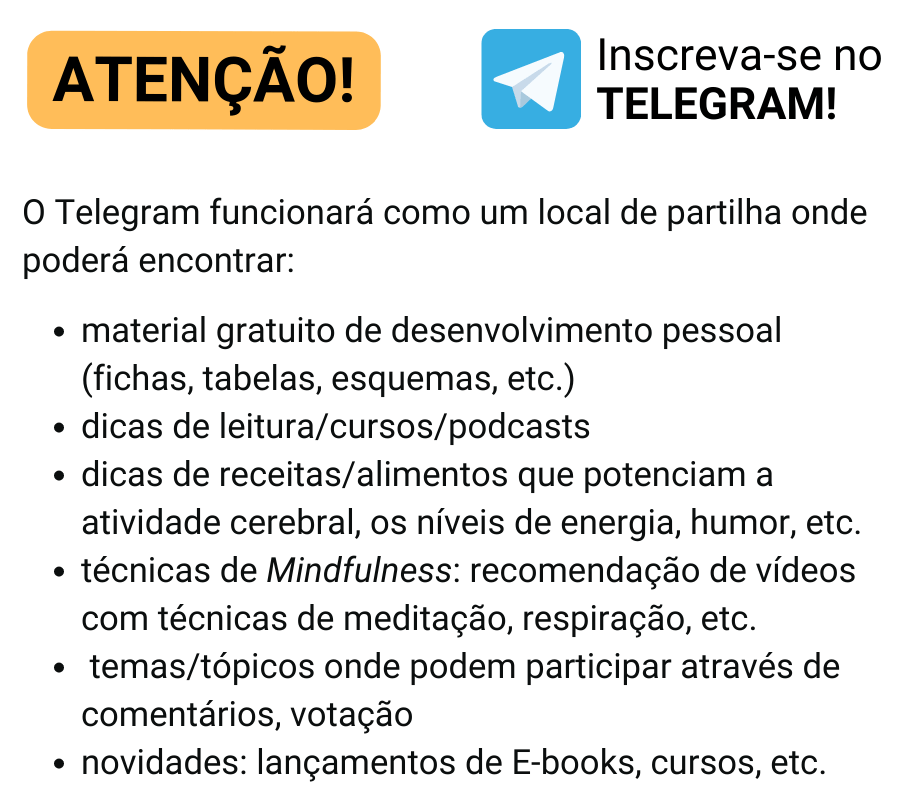 Faça download e comece a sua transformação. No final da página, veja como pode aceder a mais material gratuito através do Telegram.